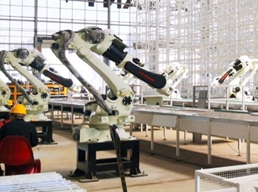 根據(jù)MES信息化需求,對中小板立庫提出需求,由AGV進行配送至上料工位,機器人進行自動上料,在分揀線上通過視覺比照、二維碼識別等技術(shù)手段,將泵車生產(chǎn)所需的各種型號工件進行分類,機器人下料抓取入框,然后由AGV小車配送至各需求工位。